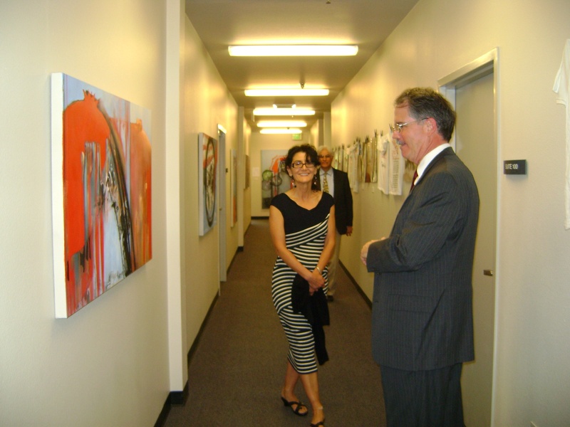 On April 24, 2013, I had the privilege of giving the former US Ambassador to Armenia, John M. Evans, a tour of my artwork. He was very engaging and thoughtful in his understanding of this period in Armenian history. He was especially pleased to find out that the "Dear John" painting was done in his honor. The two panel painting (48 x 48 in each panel) is a tribute to the former US Ambassador to Armenia, John M. Evans. It is acrylic-based mixed media that includes a collage of a newspaper article regarding the events behind his 2006 dismissal after he used the word "genocide" within the context of Turko-Armenian history. The Gallery contains several more photographs of the tour.